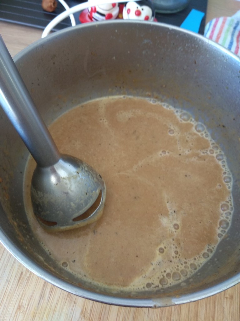 - Una vez pasado el tiempo sacamos de nuevo las pechugas junto con el ajo y pasamos las verduras con el caldo por la batidora.