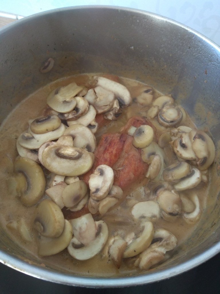 - Después de unos minutos los agregamos a la olla y dejamos unos minutos al fuego medio para que se integren con la salsa.