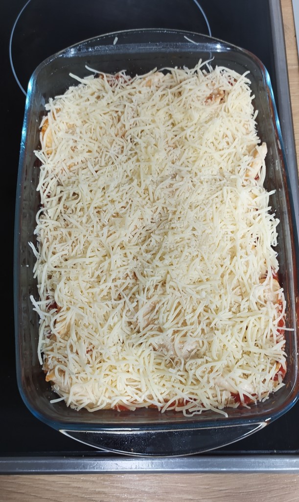 - Añadimos las especias y cubrimos con el queso.