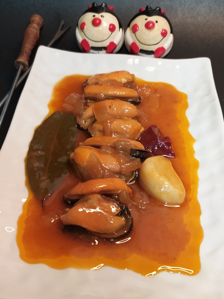 6️⃣Dejar que hierva durante 10 minutos, apagamos el fuego, lo dejamos entibiar y le añadimos la carne de los mejillones.