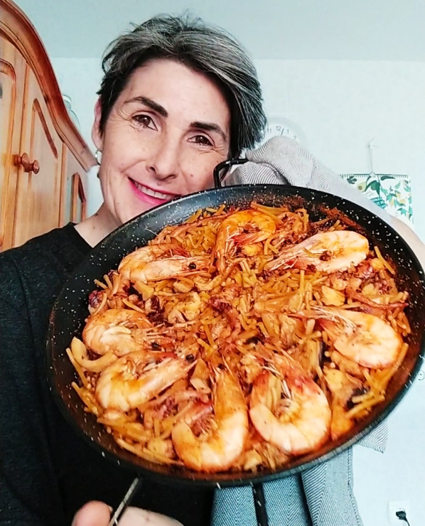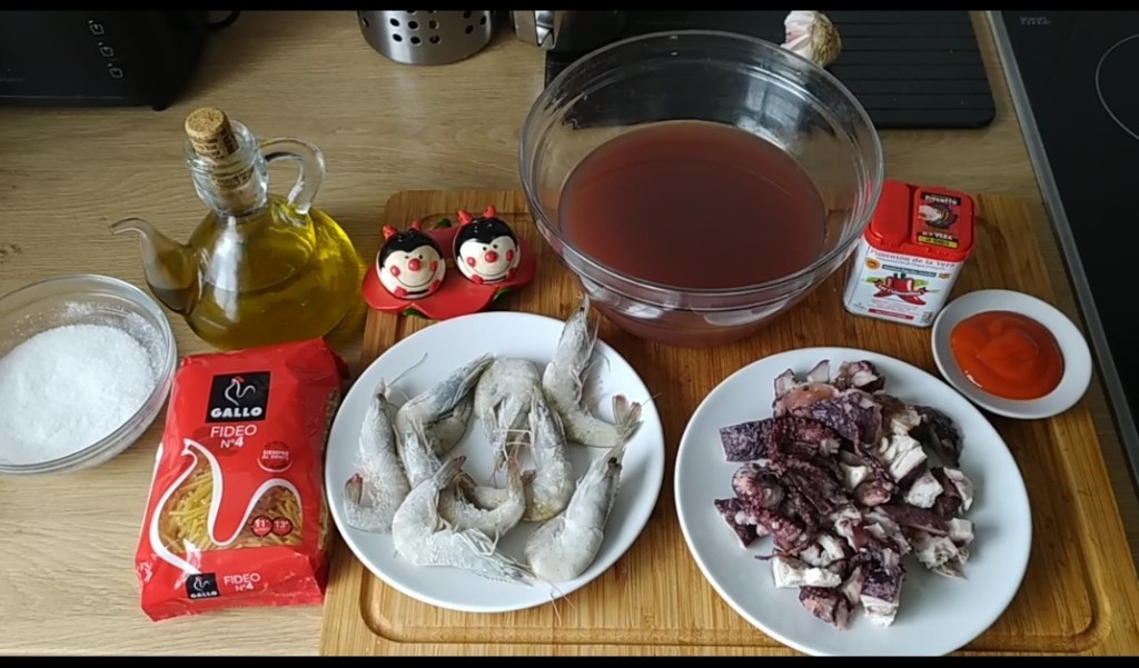 - Poner los langostinos y dejar a fuego medio hasta que esten hechos los fideos ( según el fabricante 10-13 minutos)