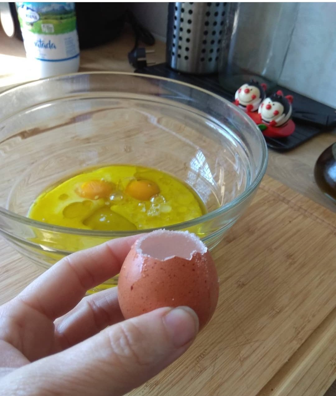 La cáscara del huevo nos sirve de medida y hay que cortar el huevo lo mas alto posible.