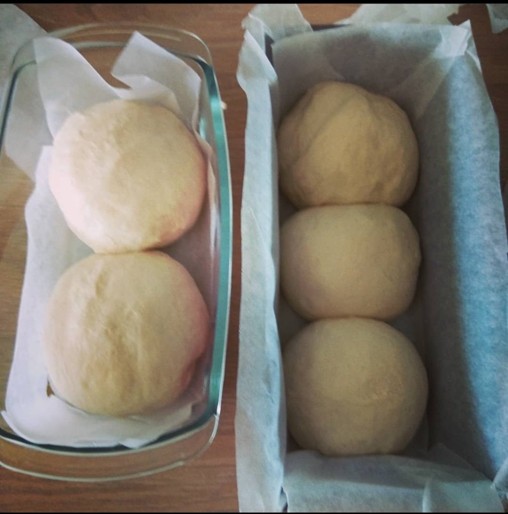 En este caso lo dividí en dos he hice bolas para hacer este pan de molde.