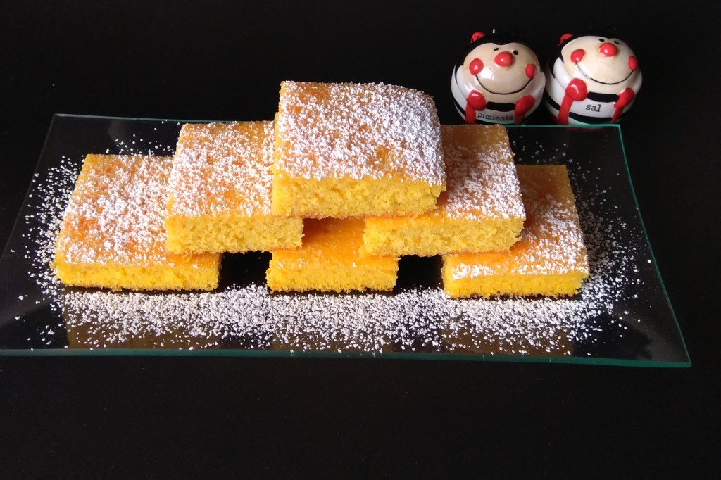 Vamos con un bizcocho de esos que te enamoran. Un bizcocho con un color y un sabor tan divinos y con una textura final después de quedar bañado por el almíbar que lo convierte en el perfecto acompañante de nuestra sobremesa.