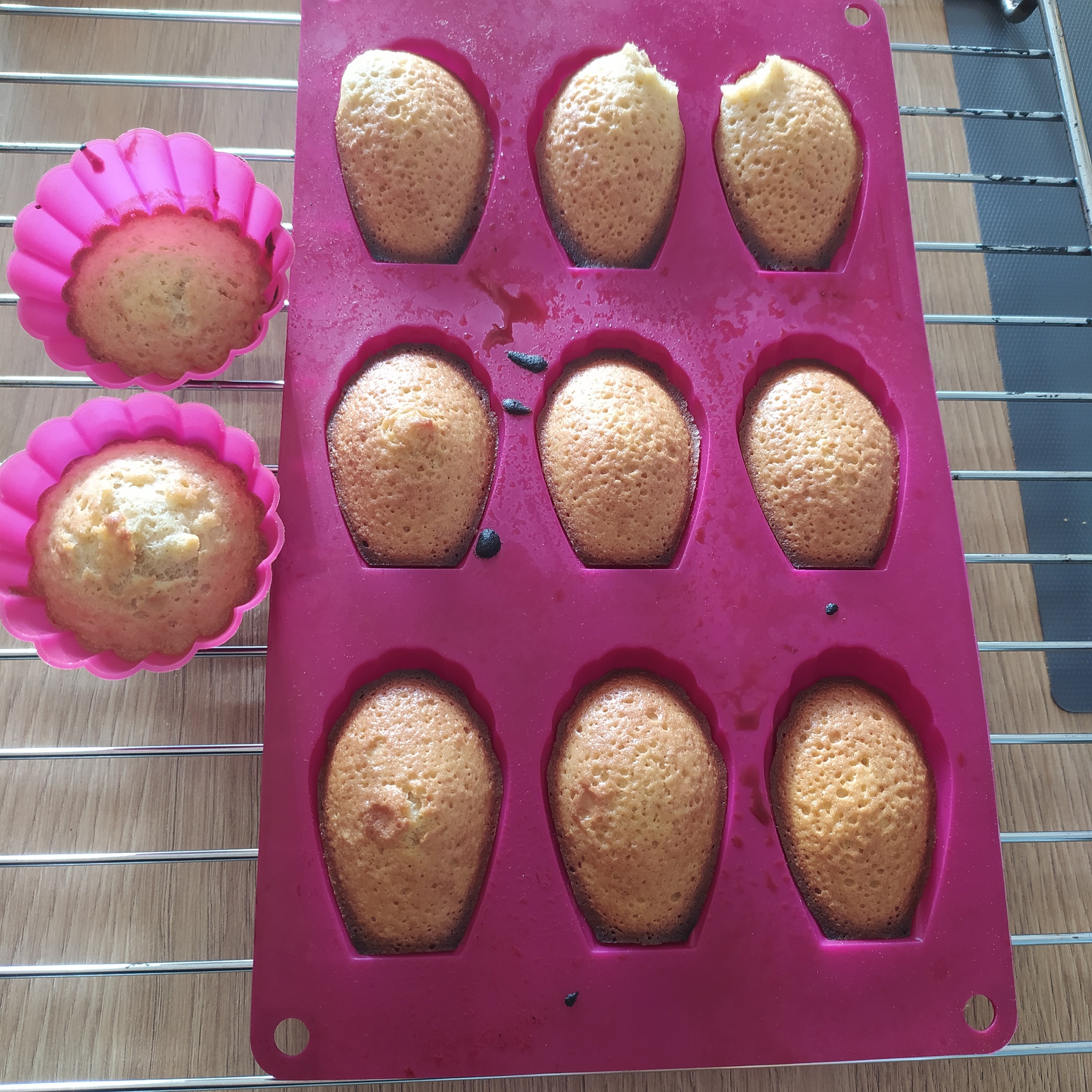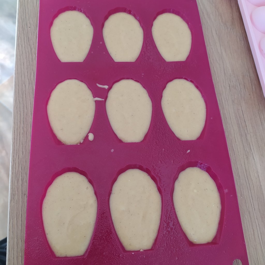 - Coloca la masa con la ayuda de una cuchara sin llenar el molde, es importante que el molde sea de éste tipo de madalenas para que salga la forma de concha, pueden ser moldes de silicona o de metal (en el caso de los de metal no olvides engrasarlo y enharinarlo antes de usar).