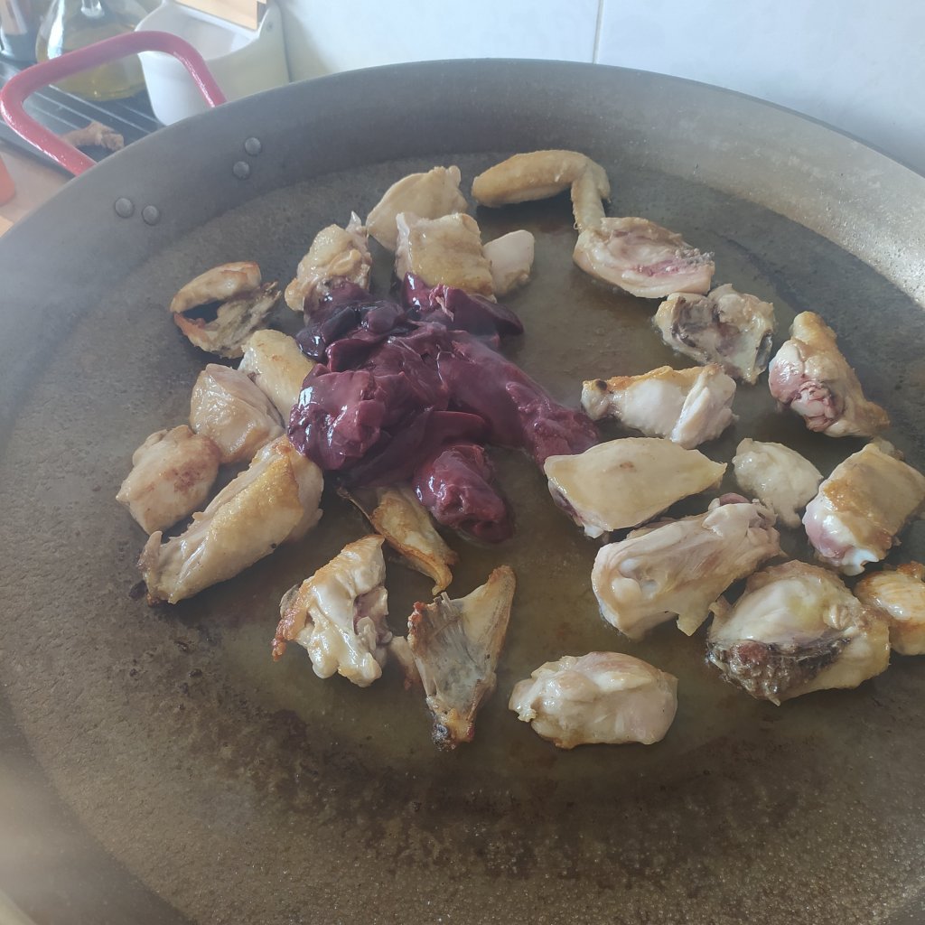 - Cuando está a mitad de cocinado se añaden los higaditos y se fríe todo hasta que esté bien doradito.