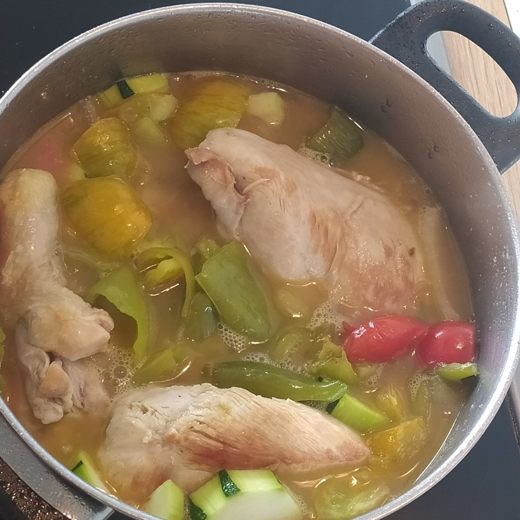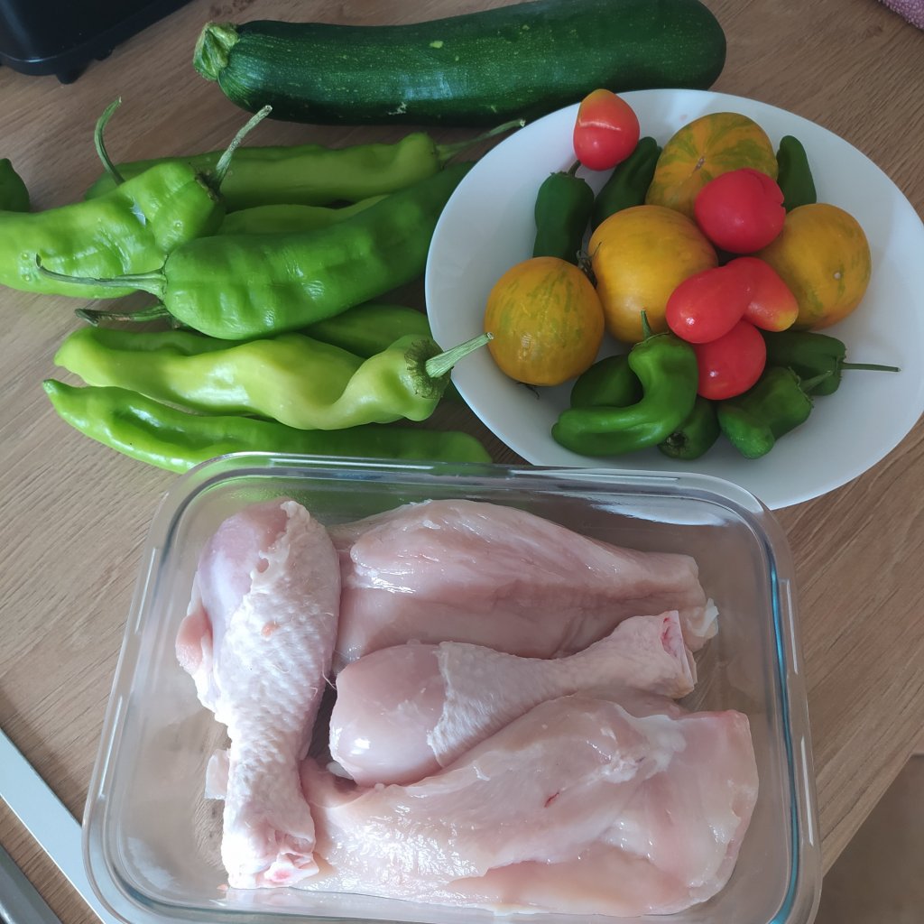 - Pollo( dos muslos y dos pechugas)