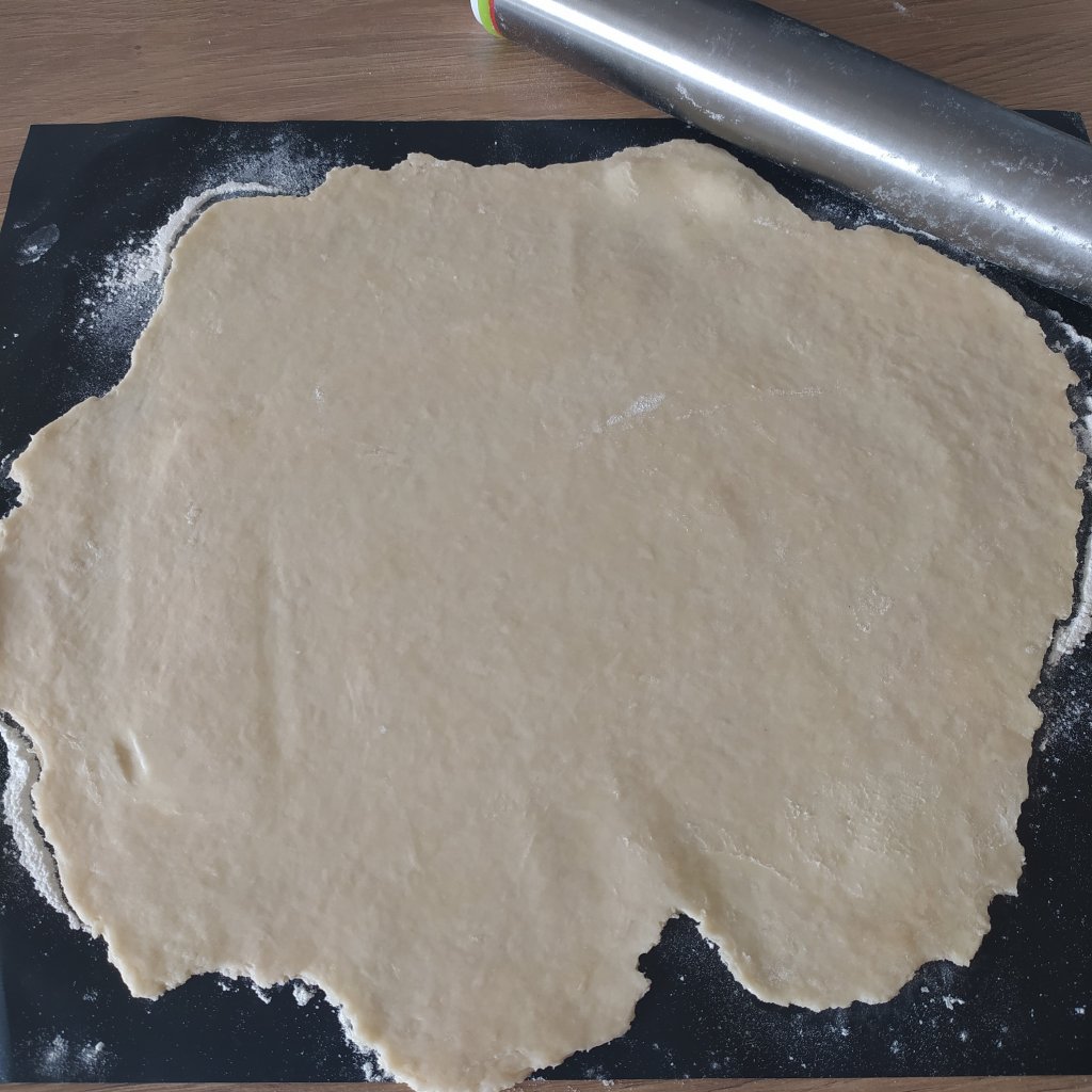 - Sacar la masa y estirar con el rodillo espolvoreando un poco de harina por encima.
