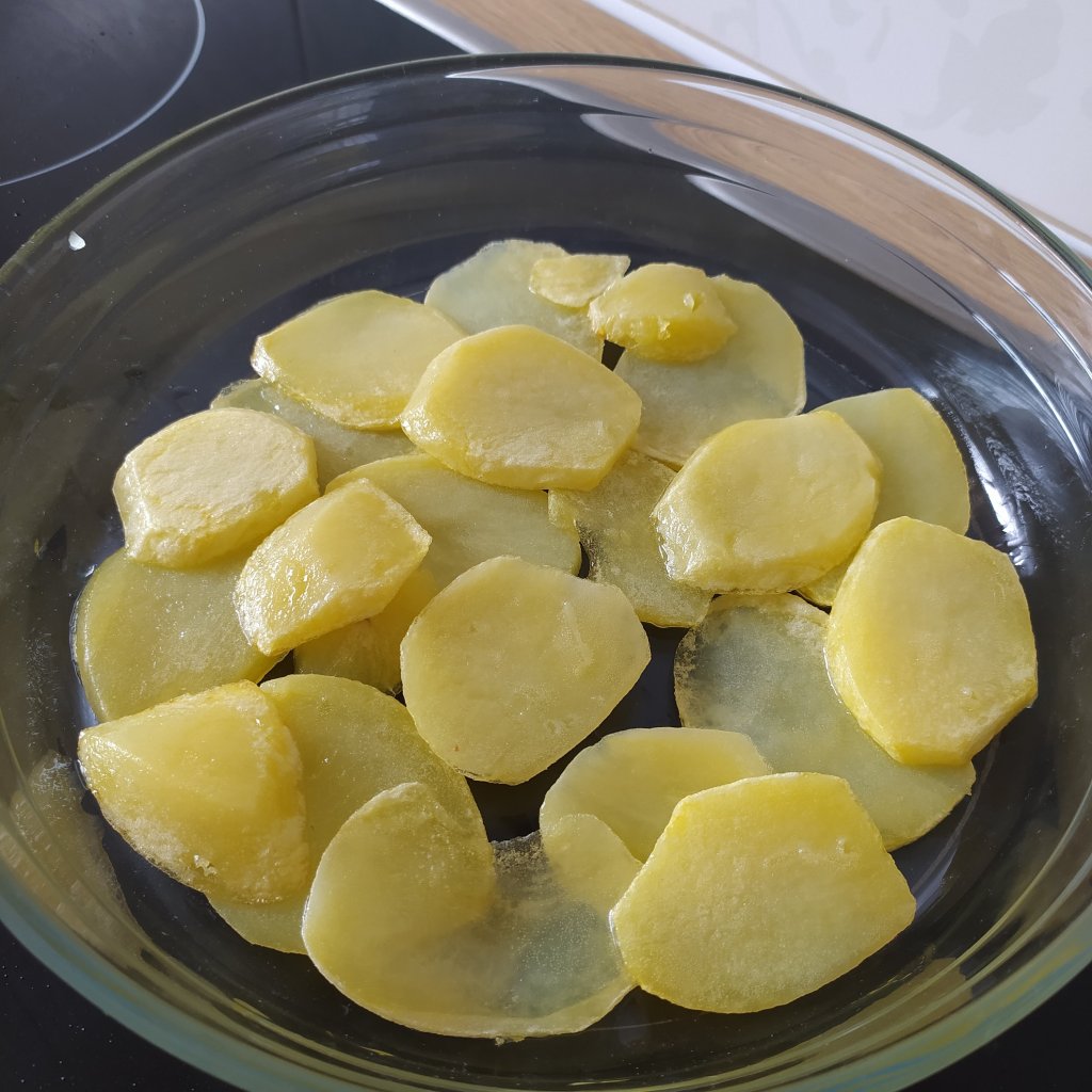 - Primero hacemos la base con las patatas.