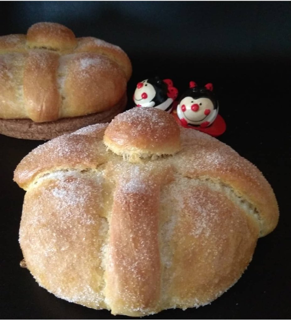 Ya sabemos la tradición que se tiene en México la noche de difuntos, la fiesta se vive con alegría para acompañar a los seres más queridos que ya no están con ellos… y esa fiesta la acompañan con este dulce llamado “Pan de Muerto”, algo similar a nuestro Roscón de Reyes, pero aún mas aireado si cabe.