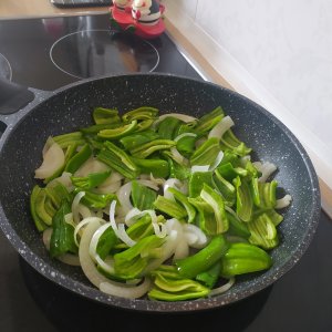 - Pimientos limpios y partidos en cuadrados