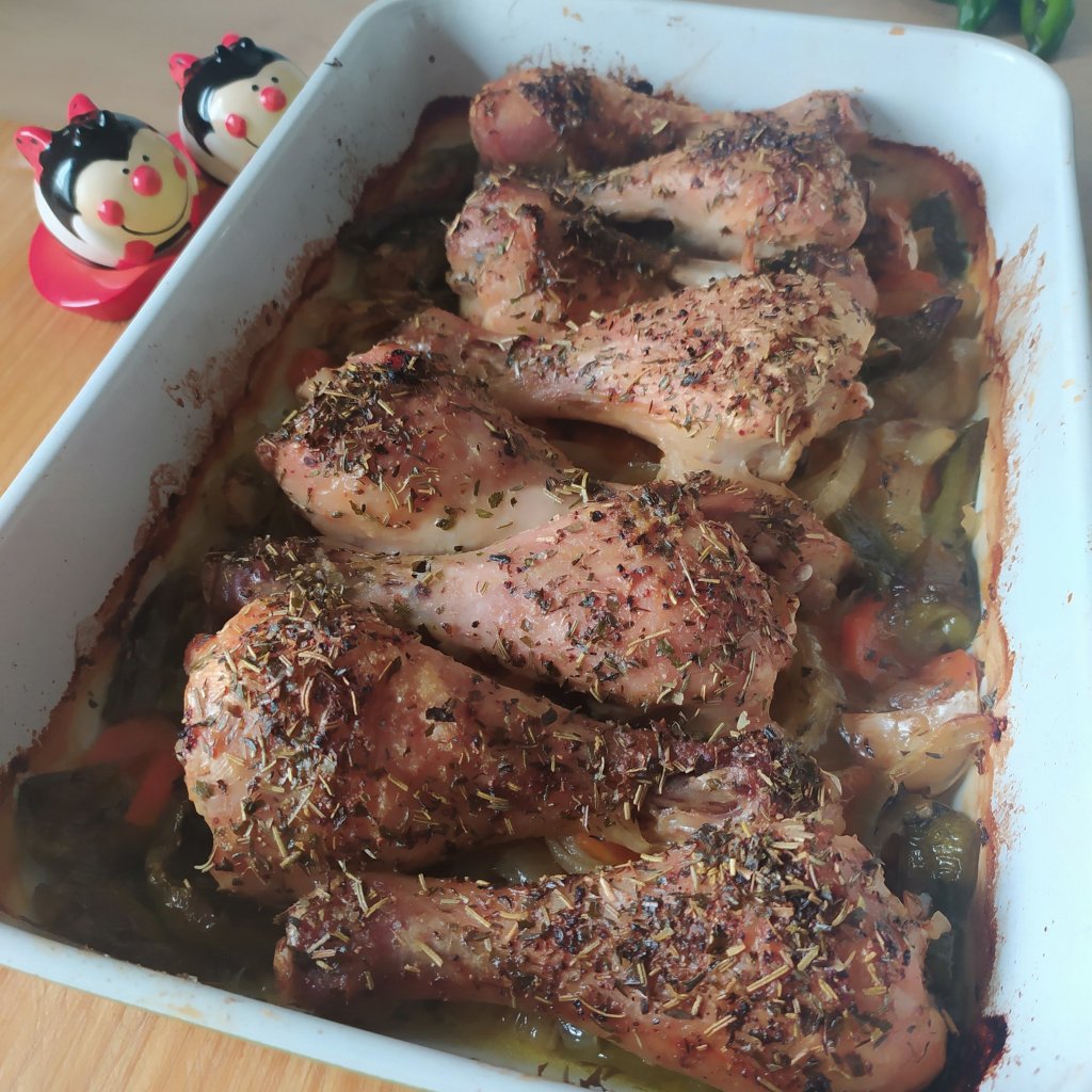 Hoy vamos a preparar unos deliciosos muslitos de pollo asados con unas verduras riquísimas. Esta receta viene genial para aprovechar todas esos restos de verduras que nos quedan por la nevera y al ir cortaditas quedan genial.
