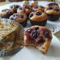 Magdalenas de arándanos rellenas de mermelada de fresa