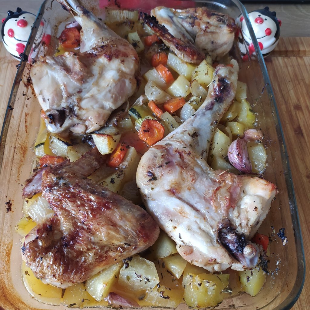 - Muslos y alas de pollo y verduras al gusto(Pollo al horno con verduras)