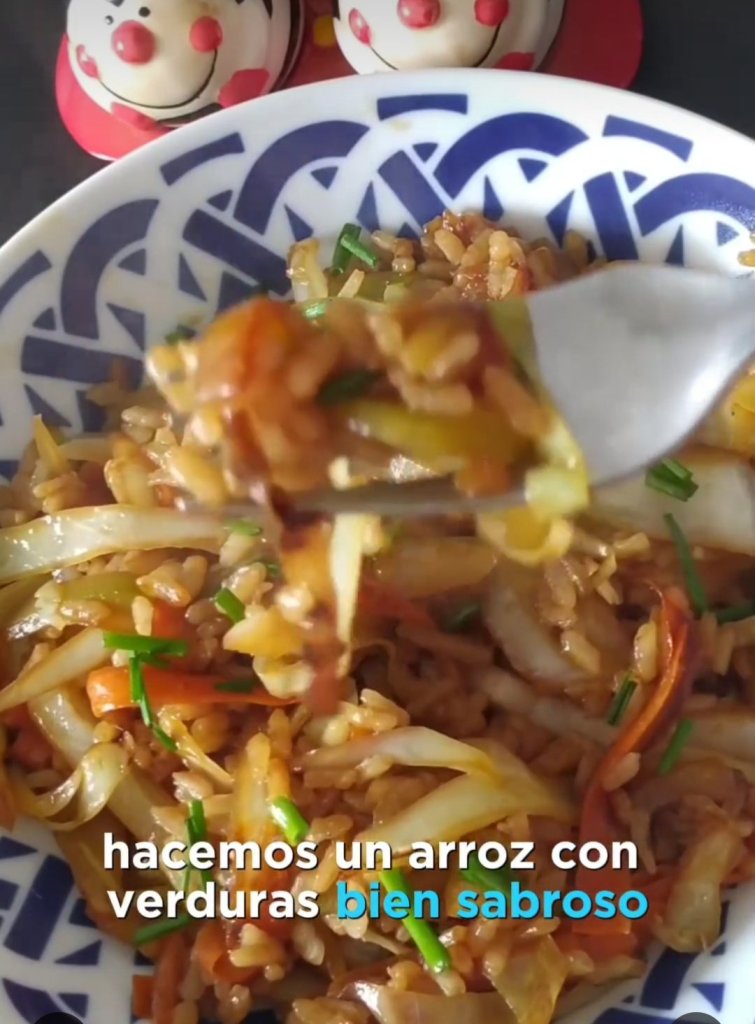 - 200 gr de arroz, repollo, zanahoria y calabacín( Arroz oriental)