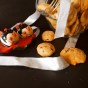 - Hacemos bolas de 100 gramos cada una, dándoles forma esférica. Las ponemos en una bandeja de horno cubierta con papel vegetal, bien separadas las unas de las otras y llevamos al congelador 15 minutos.