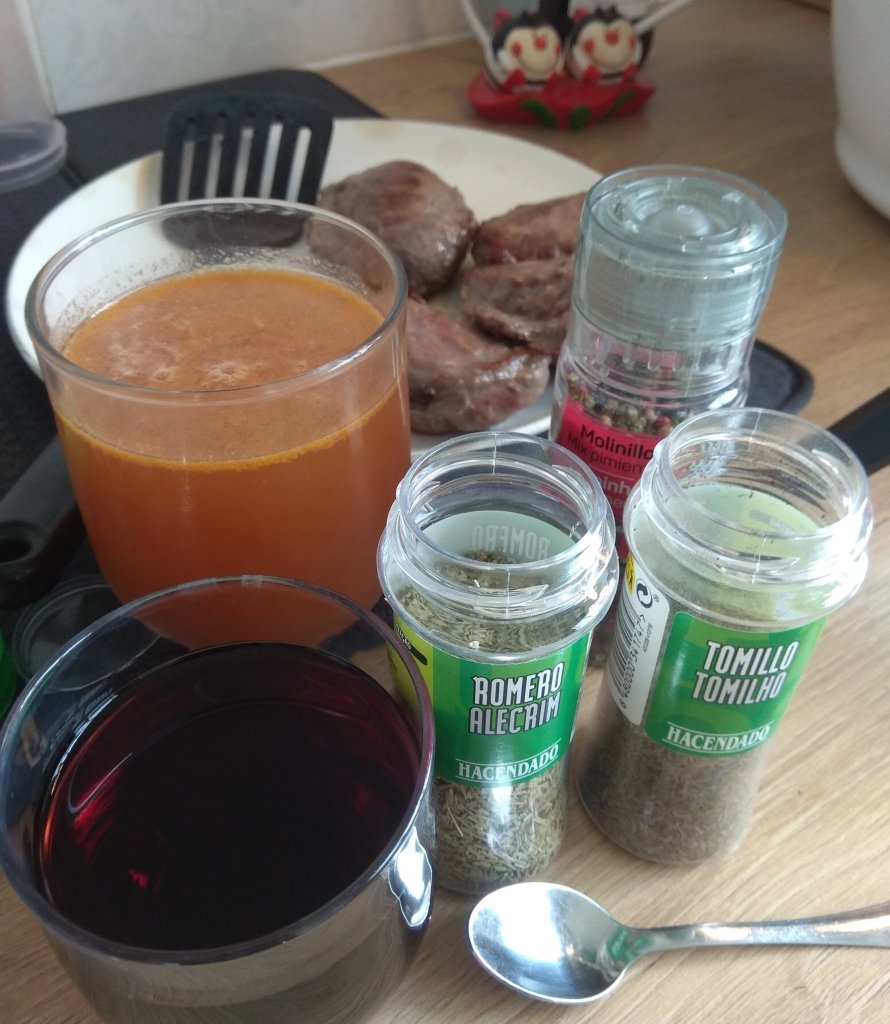 - Romero, tomillo, pimienta, 2 hojas de laurel