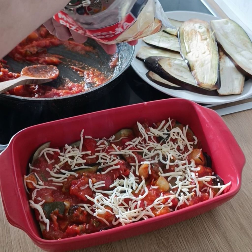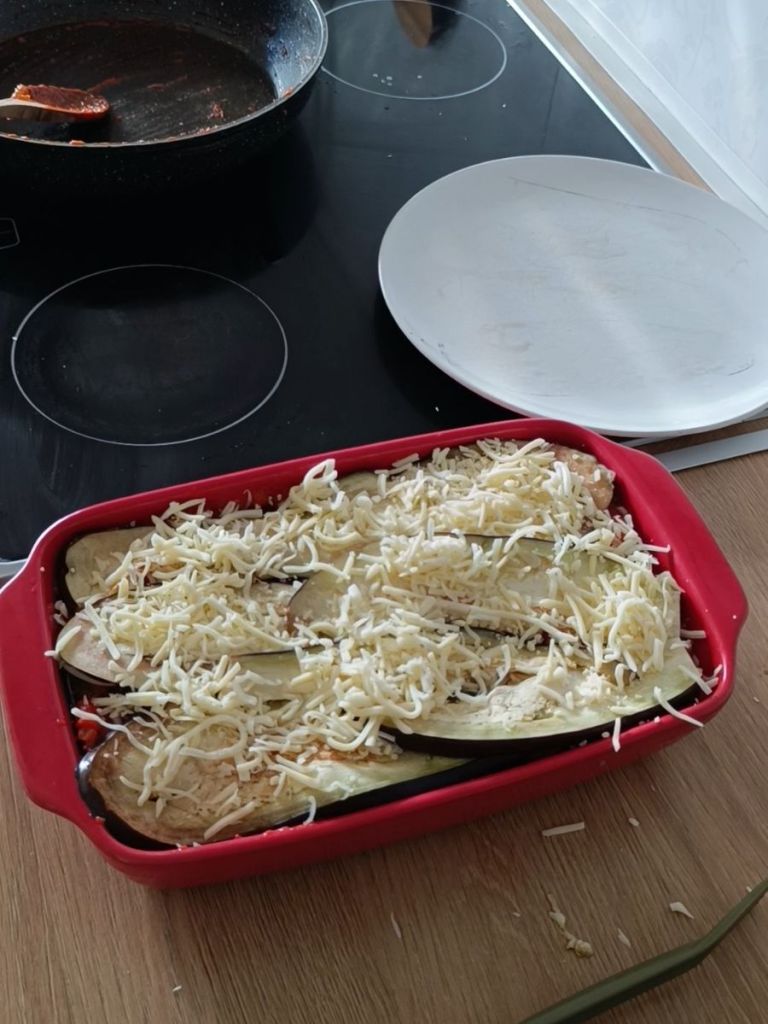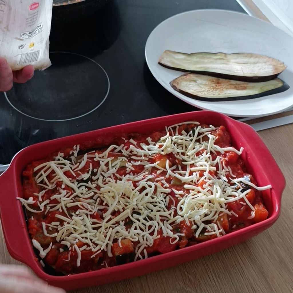 - Una vez todo preparado montamos la lasaña.