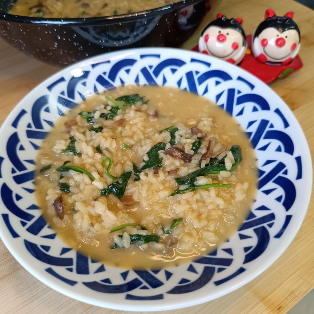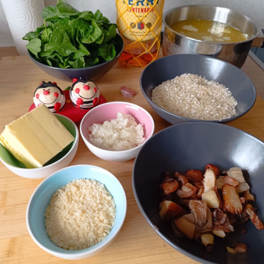 Una receta deliciosa y reconfortante, que combina el cremoso arroz del risotto con la profundidad de sabor de las setas y la frescura de las espinacas.