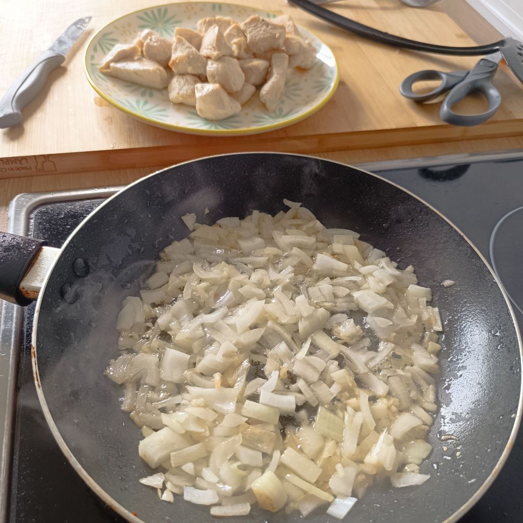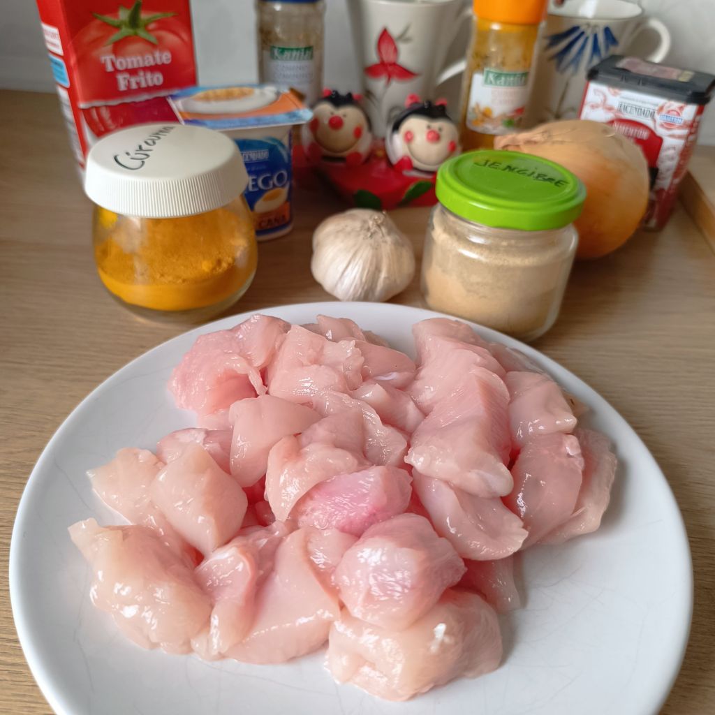 - 500 g de pechuga de pollo, cortada en cubos(3.35€)