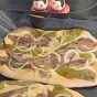 - Extender la masa en la encimera espolvoreada con harina, partir en dos y poner en la bandeja del horno forrada con papel vegetal.