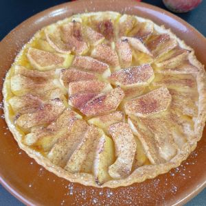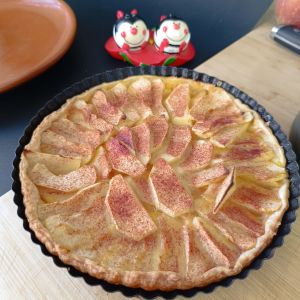 - Hornea la tarta durante 30-35 minutos o hasta que las manzanas estén tiernas y doradas, y la masa esté crujiente.