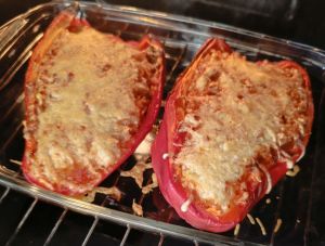 - Relleno: Corta los pimientos por la mitad y quítales las semillas. Rellena los pimientos y, si deseas, añade queso rallado por encima.