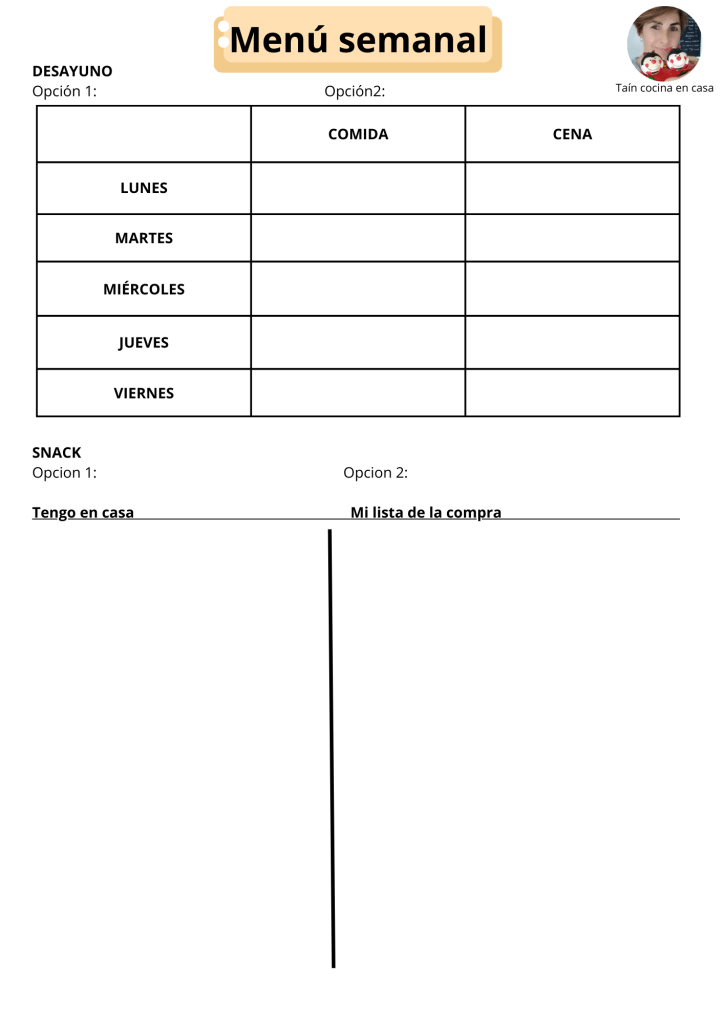2. Diseña un menú semanal