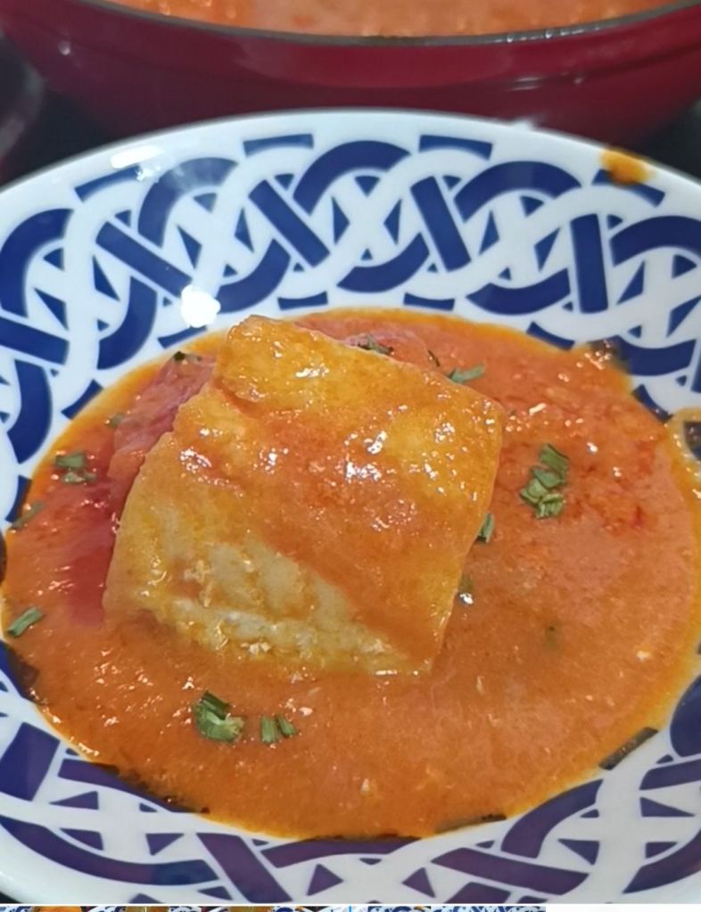 - Servir: Sirve el bacalao caliente, bañado en la salsa vizcaína, y acompaña con pan para no dejar ni rastro de esta delicia.