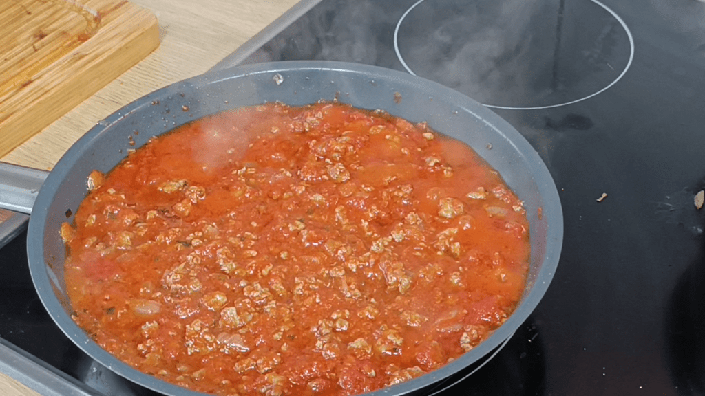 - Cocinar la carne: En una sartén, sofríe la cebolla en aceite de oliva. Añade la carne picada, el tomate frito, sal y pimienta. Cocina hasta que la carne esté hecha.