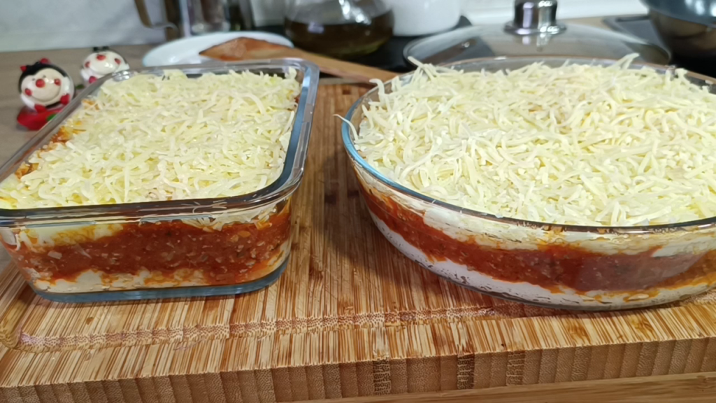 - Montar el pastel: En una fuente apta para horno, coloca una capa de puré, otra capa de carne, cubre con el puré y espolvorea el queso rallado por encima.