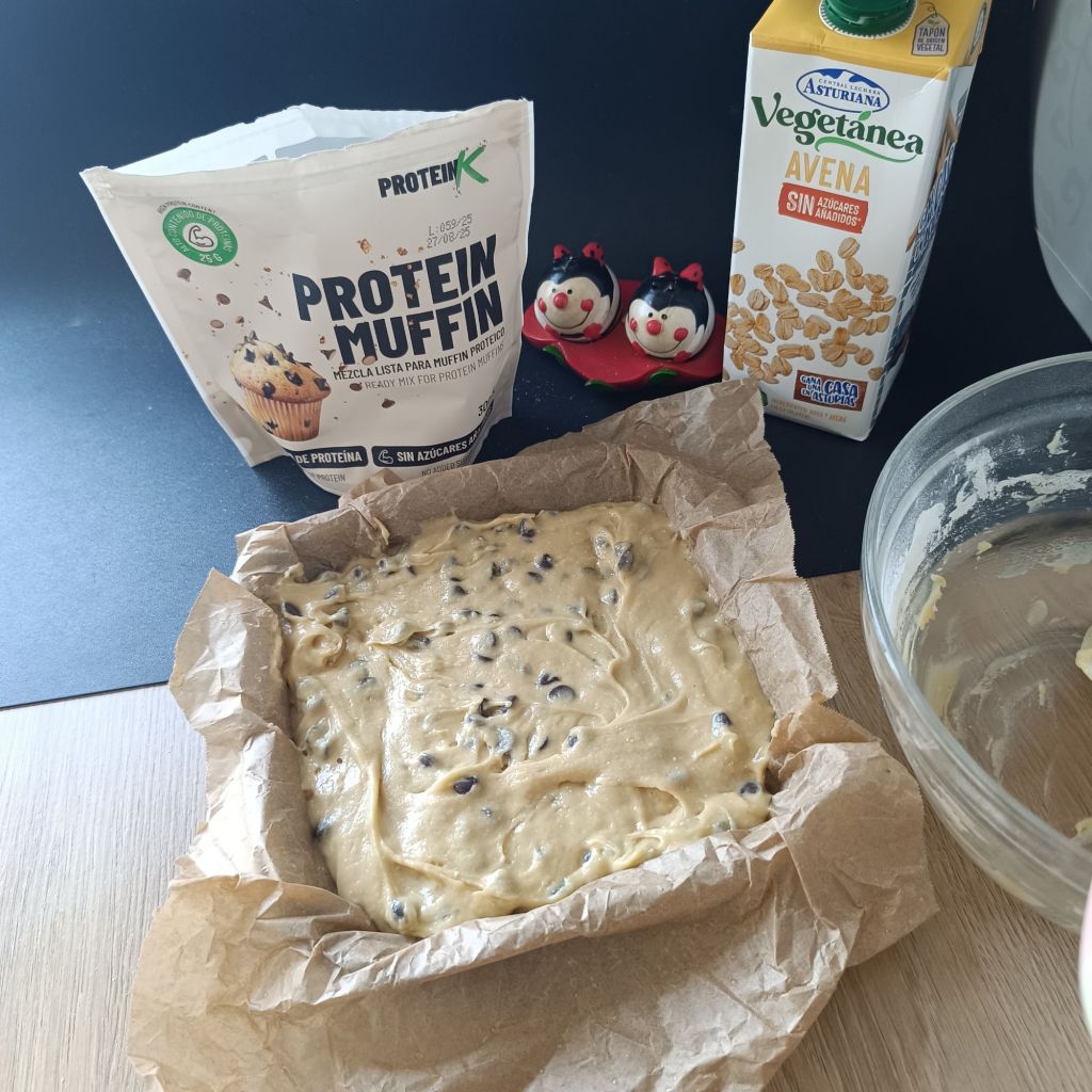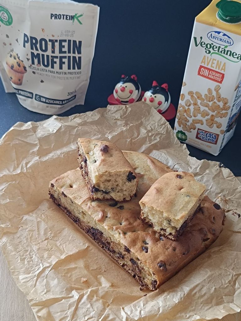 ¿Te imaginas un bizcocho fácil, con proteína, sin complicaciones y que encima esté riquísimo? Pues así ha salido esta receta que hemos preparado en colaboración con DietBox, usando la mezcla Protein Muffins de Proteink.foods y la bebida de avena Vegetánea de Central Lechera Asturiana.
