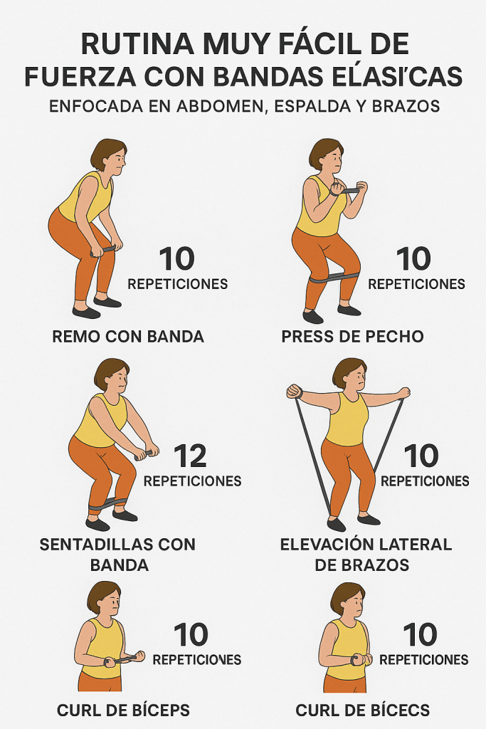 - Mini rutinas con bandas elásticas